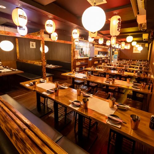 木の温もり溢れるゆったり空間♪間接照明の温もりを基調としたテーブル席がゆったりとリラックスできる空間を提供いたします。お食事はもちろん、飲み会や宴会、女子会などにも是非ご利用ください。